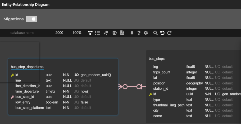 Display enities and their relationships in Entity Relationship Diagram (ERD).